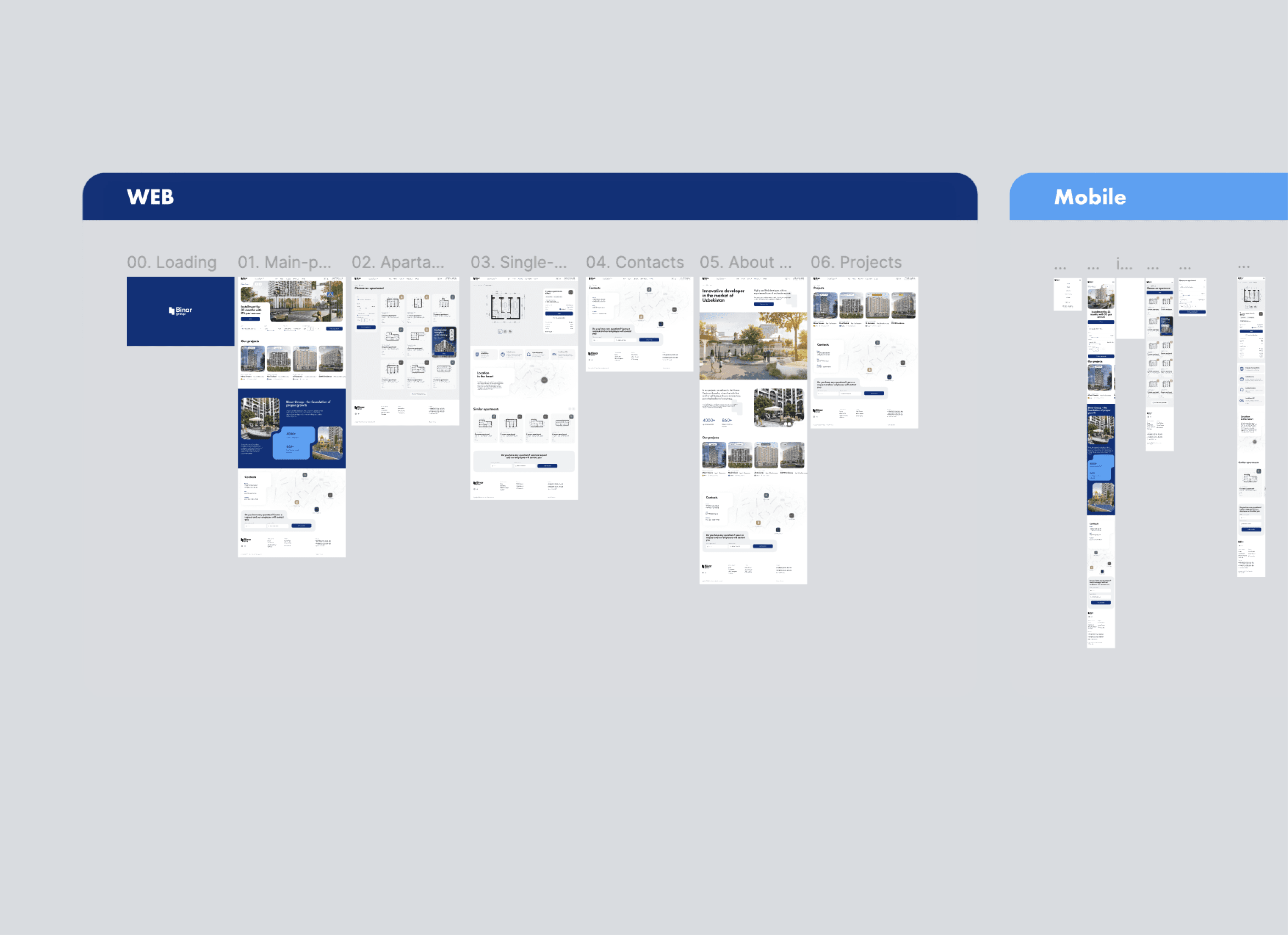We started by analyzing how users search for apartments online and what information they need before making a decision. Buyers typically compare multiple residential complexes, evaluate prices, layouts, and infrastructure, and expect a quick way to filter options. These insights shaped the foundation of the platform — a clear structure where users can easily explore projects, browse available apartments, and access key purchase information without friction.