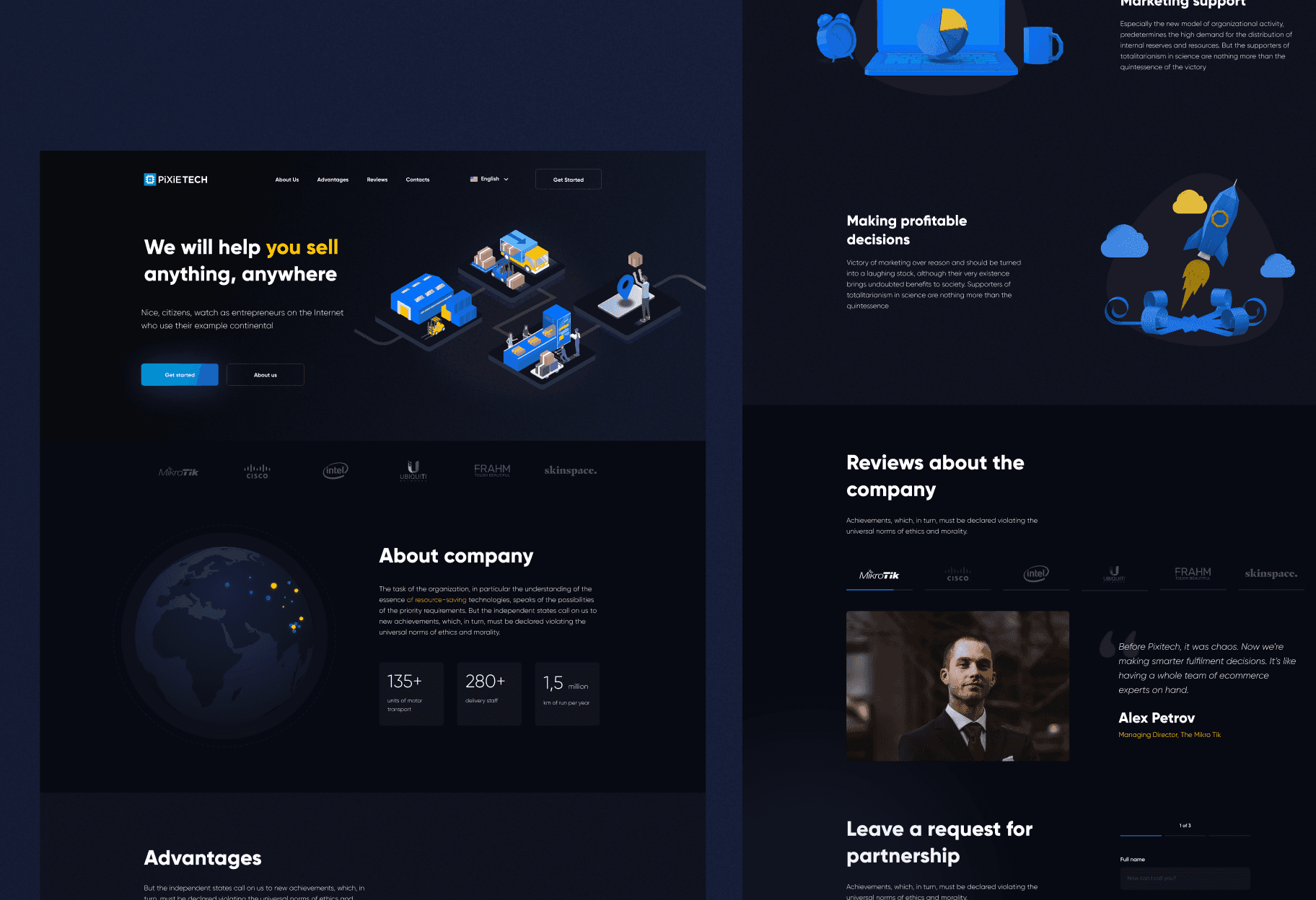 Pixitech is a logistics platform that helps businesses manage international shipping, warehouses, and delivery processes. The website was designed to present the platform’s capabilities and communicate complex logistics services in a simple and visual way.